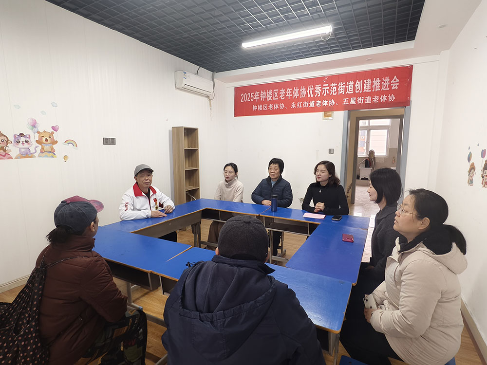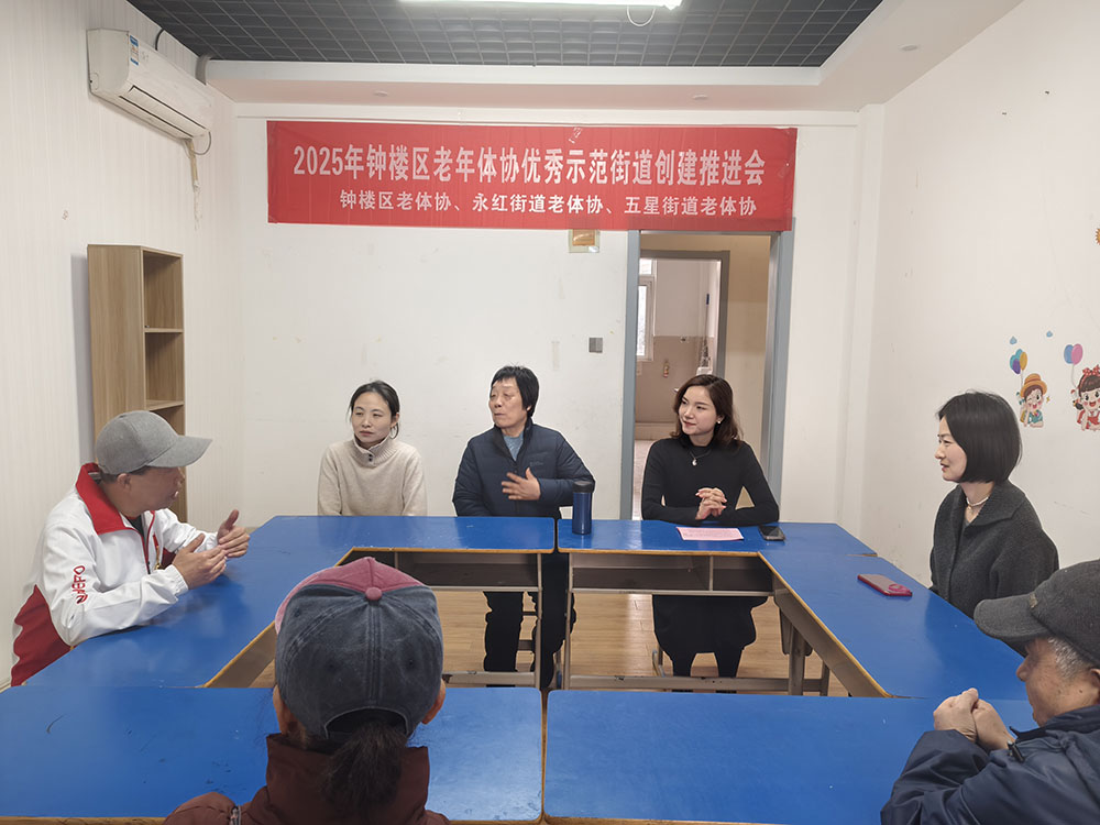 为进一步推动钟楼区老年人体育事业的蓬勃发展,提升街道老年体协工作水平,打造更多优秀示范街道,2025年3月11日,钟楼区老年体协优秀示范街道创建推进会在永红街道文体中心顺利召开。钟楼区老年体协相关领导、五星、永红街道老年体协负责人及工作人员齐聚一堂,共同谋划老年体育工作的新发展。 会上,钟楼区老年体协副主席张荷芳强调了创建优秀示范街道对于提升老年人生活质量、促进社会和谐的重要意义,并对2025年的创建工作提出了明确要求和目标。